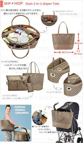 スキップホップ トートバッグ マザーズバッグ 2way SKIP HOP 軽量 大容量 オムツ替え シート付 収納 バギー マザーバッグ デュエット 2 イン 1 ママバッグ 大きめ 贈り物 ギフト