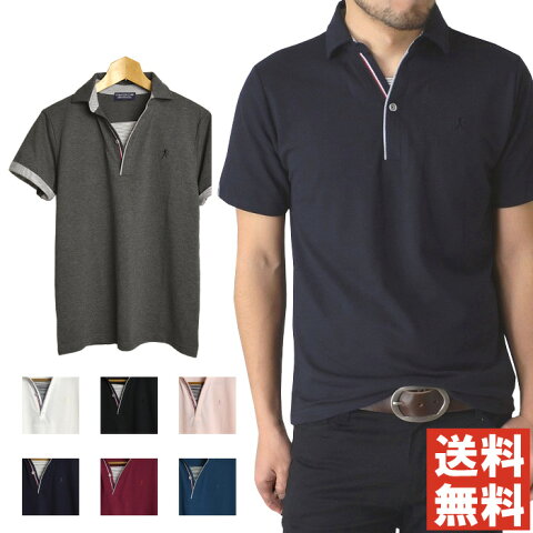 ポロシャツ メンズ 半袖 カラーリブカノコ半袖ポロシャツ スキッパー ゴルフウェア 送料無料 通販A15【RH0411】