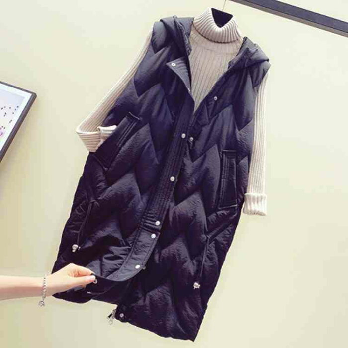 中綿ベスト レディース ロングベスト ロング丈 ノースリーブ ジャケット フード付き ポケット付き 無地 キルティング 中綿入り コート 軽量 ダウン風ベスト 防寒 あったか 暖かい シンプル カジュアル おしゃれ 冬物 秋冬